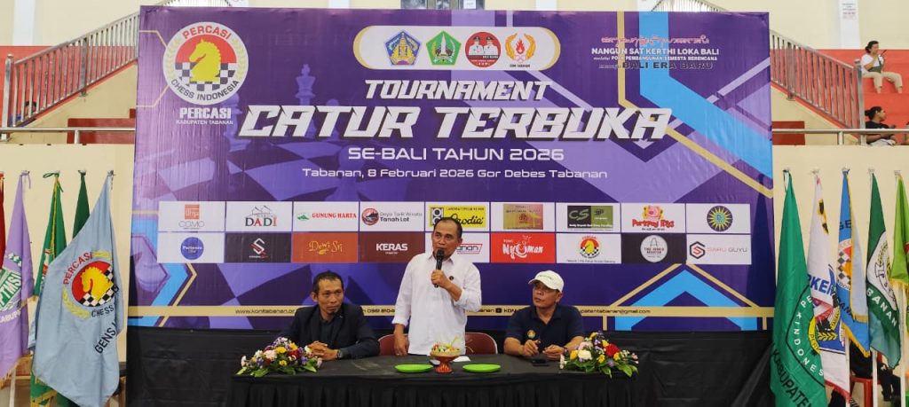 Tabanan — Persatuan Catur Seluruh Indonesia (Percasi) Kabupaten Tabanan menggelar Turnamen Catur Terbuka Se-Bali Tahun 2026 yang berlangsung di GOR Debes, Tabanan, pada Minggu (8/2/2026). Kejuaraan ini diikuti oleh ratusan pecatur dari seluruh kabupaten/kota di Bali, yang datang untuk mengadu strategi dan ketajaman berpikir di Kota Singasana.
